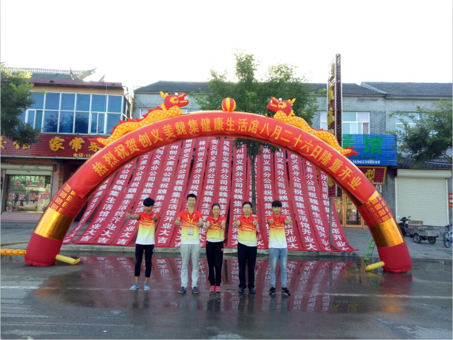 8月26日,山东滨州市惠民县魏集镇庄园路口彩旗飘扬,热闹非凡,当地的居民以及创义美的家人代表汇聚在此共同庆贺创义美魏集健康生活馆盛大开业。