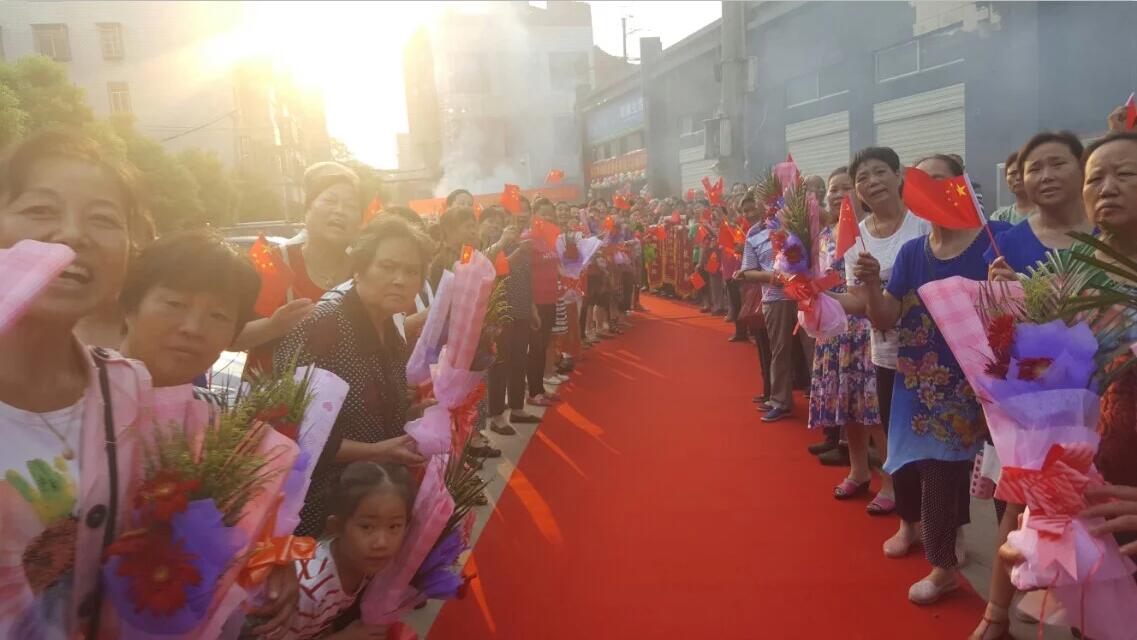 一路上赵董受到了叔叔阿姨的夹道欢迎,所到之处里里外外姹紫嫣红,鼓乐齐鸣。现场的叔叔阿姨非常的热情高兴,一簇簇的鲜花,一声声的感谢,一阵阵的掌声,都是大家内心最真挚的情感,对赵董的最热烈的欢迎。