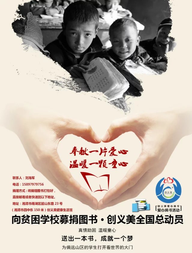 各位家人,可能你不经意的一个善举,捐赠一本书,也许改变的是一段人生。成就一个梦。真情助困,温暖童心。为偏远山区的学生打开看世界的大门。创义美作为一个有爱心,有责任感的企业,更应该伸出援手。创义美总部特呼吁全国的家人:奉献一片爱心、温暖一颗童心。孩子们需要我们。
