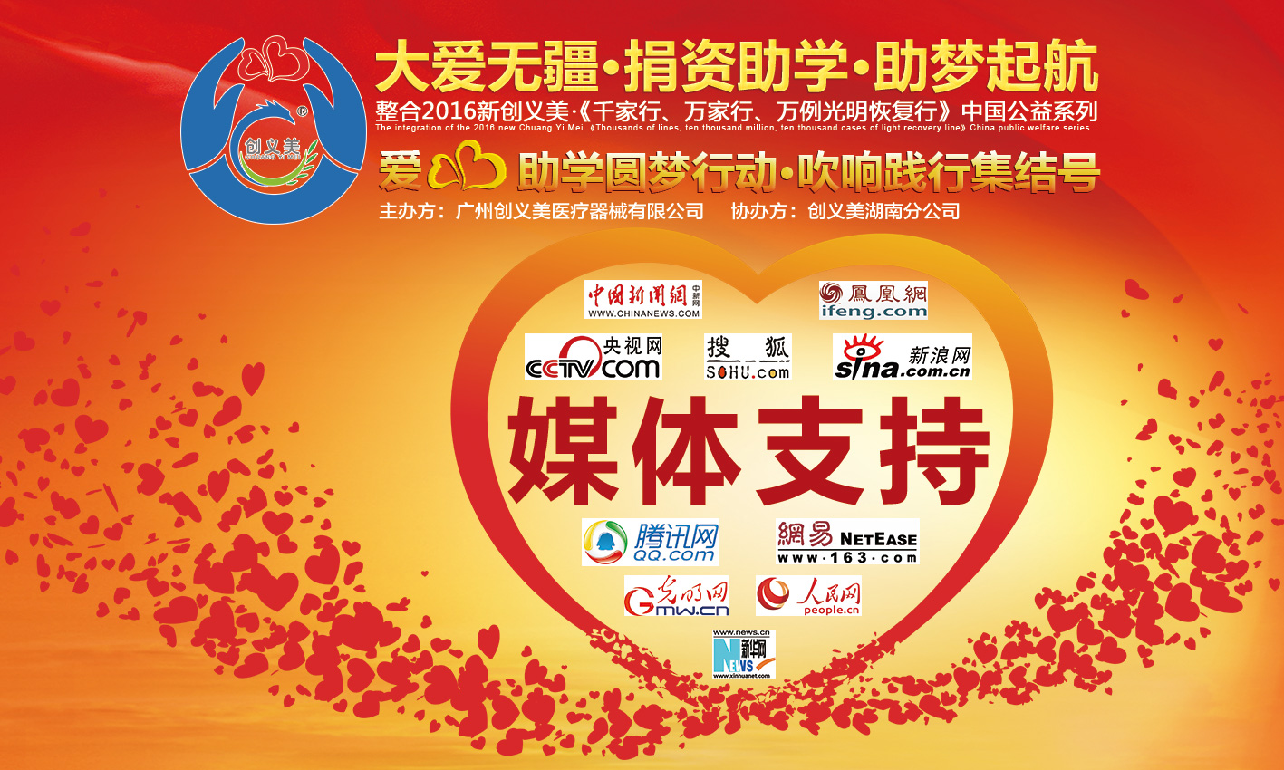 10月,创义美科技集团走进湖南韶山清溪镇如意小学,开启“大爱无疆·捐资助学·助梦起航——整合2016新创义美·《千家行、万家行、万例光明恢复行》中国公益系列”爱心助学圆梦活动。此次爱心助学圆梦活动规模之大,人气之高,受到大家万众期待,同时也吸引了国内央视网、中国新闻网、凤凰网、搜狐网、新浪网、腾讯网、网易网、新华网、光明网、人民网等多家权威媒体以及当地电视台的关注,并持续报道,让大家了解活动最新情况。