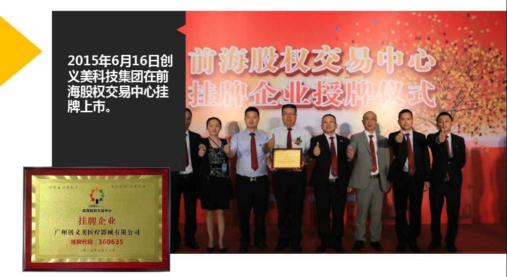 2003年创义美自主研发高电位产品取得了南方医院、广州军区医院、北京大学深圳医院三家三甲医院的临床试验与报告,经国家食品药品监督管理局严格审批注册上市,打开了自主研发的新纪元。