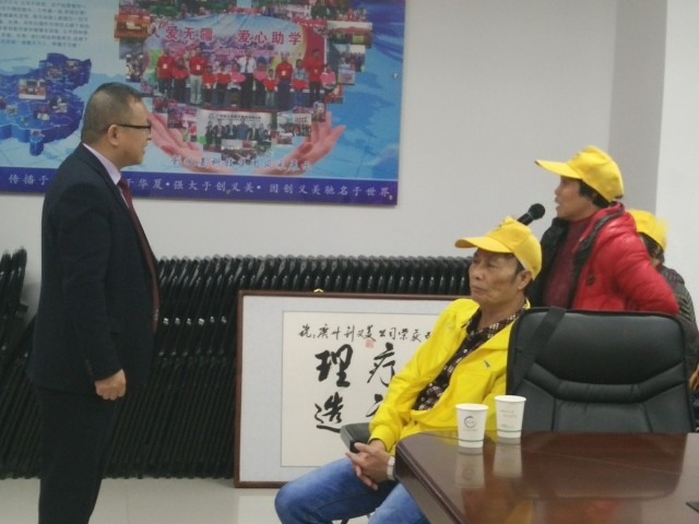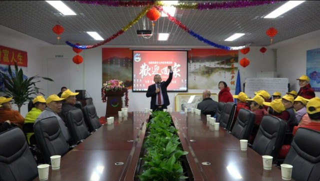 随后王总在叔叔阿姨们热烈的掌声中进入会场,叔叔阿姨们兴奋的站起来,高声呐喊:”我们是一家人”,现场气氛热烈。