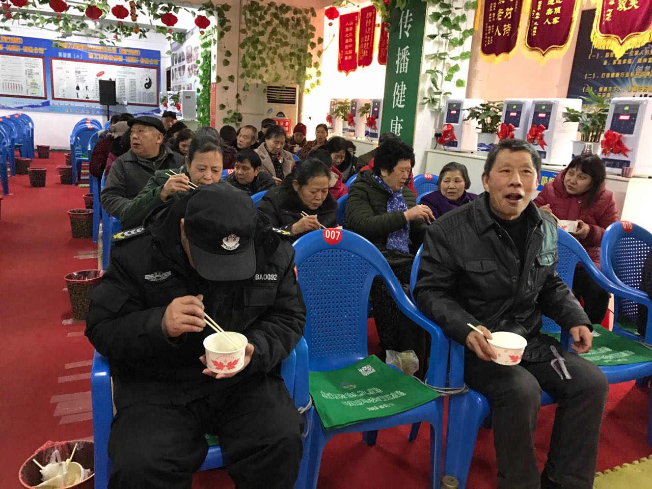 活动当天,生活馆里提前准备好了食材,叔叔阿姨也早早地来到健康生活馆,大家围坐在一起和面、擀皮、包馅、忙得不亦乐乎。很快,一个个包含着幸福和温暖的饺子下了锅。叔叔阿姨们吃着热呼呼的饺子,场面温馨、热闹,大家开怀畅饮,谈天说地,共叙邻里情,脸上都洋溢出了幸福的笑容。整个生活馆里欢声笑语此起彼伏。