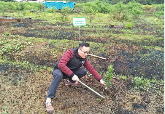 家人们紧紧跟随王总一起挥锹铲土为广州大地播下新绿。有的拿着锄头,有的拿着铁锹,有的拎着水桶,一起投入到植树劳动中。大家分工合作,挥锹铲土,扶苗填坑,踏土夯苗,细心浇水,每道工序都认真细致、一丝不苟,一起接连栽好了十余棵苗木。经过大家的辛勤劳动,一棵棵新种的小树苗亭亭玉立,在明媚的春光中展现出勃勃生机。