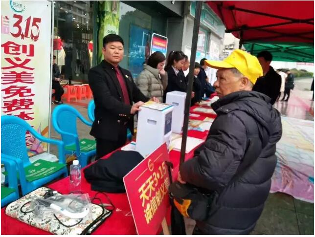 在创义美董事长赵宗平和总经理王文刚走进央视315晚会的当天,创义美科技集团为了全力响应国家,支持消费者权益保护法律法规建设的推进工作,更是发动全国各地的家人,共同参与由国家部门、媒体机构、社区服务部门等举办的维护消费者权益活动中来,通过全国各地的家人形成消费维权合力,与中国消费维权的法制化进程携手并进,为“健康中国”助力加油,并且创义美全国分公司更是利用各种形式进行诚信宣传,用来捍卫消费者的权益。