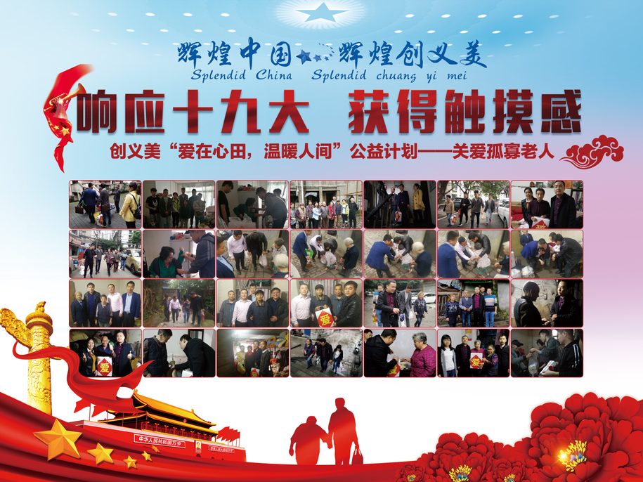 另一方面,创义美通过长期坚持倡导和和弘扬“大爱、感恩、孝顺、长寿、快乐”中国传统文化和美德,传播“真、善、美”、“正能量”,在全社会形成尊老爱老敬老的良好道德风尚;自主发起公益活动,鼓励呼吁社会各界关注和投入,尽自己的绵薄之力关爱孤寡老人,帮扶社会弱势群体。
