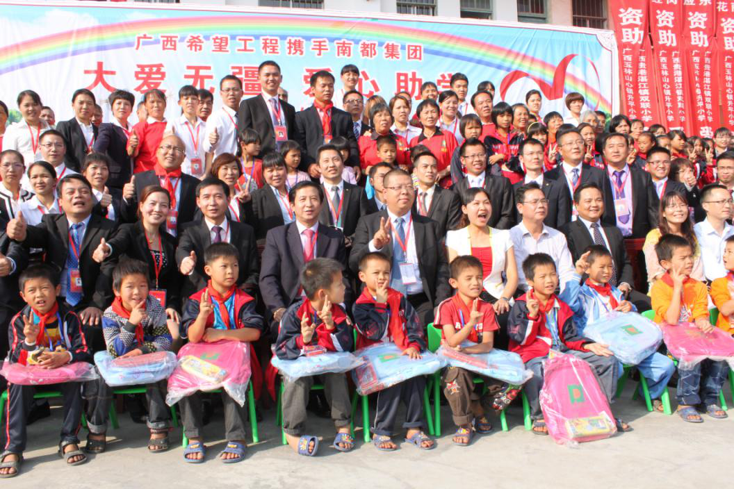 2014年12月10日,广西贵港双联小学、广西山心升平小学。资助了数十名山区特困生从小学到大学的学费